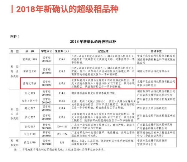 3月6日,根據《農業部辦公廳關于發布2018年超級稻確認品種的通知》,經各地推薦和專家評審,我公司重點主推品種晶兩優華占被確認為2018年超級稻品種。