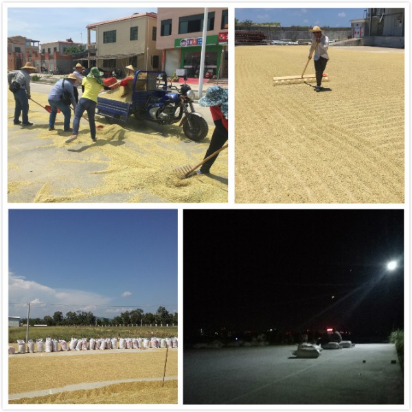 當(dāng)旭日東升,微風(fēng)拂面,田間蛙鳴蟲囂漸漸聲小,白衣草帽已時(shí)隱時(shí)現(xiàn); 當(dāng)烈日當(dāng)頭,風(fēng)聲漸息,枝頭蟬鳥凄鳴聲嘶力竭,黝黑臉頰已汗水成河; 當(dāng)熱浪炎炎,陽光刺眼,泥中赤腳躬身風(fēng)吹不動,眼神專注而炯炯有神; 當(dāng)夜幕降臨,燈火升明,歸途緩步而行神情從容,鼻尖亦可聞陣陣稻香。 5月的海南島,已經(jīng)進(jìn)入炎炎夏日,亦是我們制種進(jìn)入豐收時(shí)節(jié)。當(dāng)清晨微風(fēng)拂面,一夜的蛙鳴蟲囂,漸漸聲小。在微風(fēng)吹起的陣陣波紋中,隱約可見草帽在田間時(shí)隱時(shí)現(xiàn),時(shí)而駐足彎腰,間而邁步前行。遇見在田間忙活的老伯,上前問候和交談,仔細(xì)叮囑清除雜株,嚴(yán)格進(jìn)行除雜保純工作。 當(dāng)正午風(fēng)聲漸息,烈日炎炎,枝頭蟬蟲掀起陣陣凄鳴。在炎炎烈日的炙烤下,萬物皆在尋找著遮擋陽光的容身之所,避免被火熱的太陽無情摧殘;在稻穗連綿的田野里,有那么一群人,頭頂烈日,腳踏赤土,眼神專注而炯炯有神。并非他們能無視這火熱的太陽,而是他們從事著這大地上最陽光的事業(yè)。 當(dāng)傍晚夜幕降臨,村莊漸漸升起燈火,路上車燈交織閃耀。田間漸漸響起歡呼雀躍的聲音,仿佛萬物都在慶祝涼爽的夜月到來。生產(chǎn)人緩步行走在傳來陣陣流水聲的田野,不時(shí)能聞到飄來的陣陣稻香,讓人神情從容而身心舒悅。 收割正當(dāng)時(shí)!望著金燦燦的田野,讓人忍不住分享豐收的喜悅。每一個(gè)崗位上的人們,眼神含笑,一絲不茍的進(jìn)行著收割前的準(zhǔn)備工作。收割機(jī)清理、運(yùn)輸車清倉、打掃曬場,緊鑼密鼓,緊張有序。當(dāng)露水漸干,隨著收割機(jī)的轟鳴聲,驚醒了田里的小精靈,也意味著南繁制種最后的戰(zhàn)役正式打響。 收割上來的種子必須及時(shí)運(yùn)達(dá)曬場攤薄晾曬;為搶占晴好天氣,在曬場攤曬的種子必須頻繁翻動迅速降低水分達(dá)到入庫要求;為及時(shí)將種子送達(dá)農(nóng)戶手中,已達(dá)標(biāo)的種子及時(shí)打包日夜兼程發(fā)往星城。 在祖國制種最南端,有這樣一群人,既腳踏實(shí)地亦仰望星空,聽蟲鳴鳥叫看云卷云舒。為打贏南繁制種最后的戰(zhàn)役,隆平生產(chǎn)人愿夕與新月宿,曉隨殘?jiān)滦小?/p>