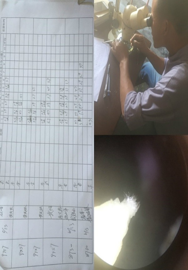 連續的陰雨也沒能擋住六月的驕陽似火,布谷鳥的歌聲也愈加歡快起來,空氣中彌漫著水稻的清香味,三系組合幼穗分化如期而至;幼穗剝檢,花期預測也拉開了帷幕。 幼穗剝檢以主莖為剝檢對象,選取一穴中葉片最長苗為主要莖穗,每穴只取一根主莖苗,然后在解剖鏡下剝檢觀察。這是一項極為細致的活,因為在幼葉包裹下剛露出生長點的幼穗猶如襁褓中的嬰兒,極為細小,用肉眼是無法看到的。我們必須將葉片剝到徒手不便于繼續時,才能放置在解剝鏡下,再用針一層一層的剝到幼穗的出現,根據生長錐出現橫紋和小泡來判斷是否進入幼穗分化一期。 幼穗分化一期時,在解剖鏡下剝檢對于我們來說也是一個挑戰。對每一個生產人來說,第一次剝檢的經歷都是一次難忘的挑戰,那時握著針的手在針尖觸碰到幼葉時,都會不自覺地顫抖,越靠近幼穗,抖得越厲害。直到我們通過無數次的嘗試、挑戰才逐漸克服第一次剝檢的尷尬經歷,現在操作手偶爾也會抖動,但通過解剖鏡看到預期的結果時,心中每每會泛起漣漪,激動不已。 不管是剝檢,了解幼穗的發育過程,還是探尋事物的本質真相,都需要不斷嘗試,不懈努力,有無數經歷的結果才是耀眼的。