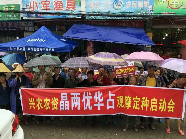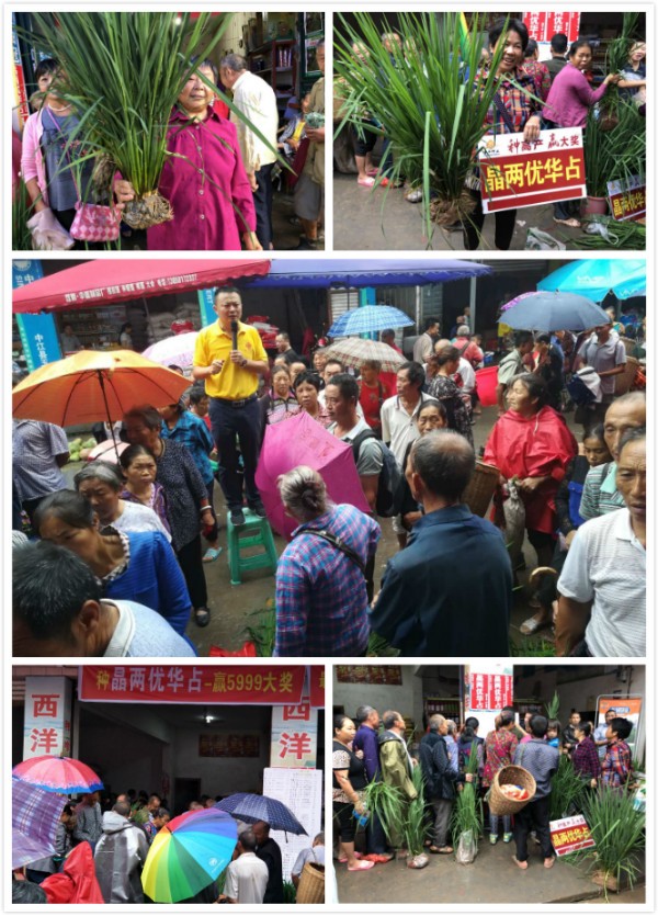 在前期努力下,中江通過晶兩優華占高產示范技術田間培訓會打造了一批高度認可品種,愿意宣傳,愿意配合工作,自身擁有一定面積,有一定種植技術的晶華占種植戶。為了持續造成影響,更深入地了解品種,傳播技術,帶動更多的人參與品種推廣宣傳,一場熱鬧的觀摩預定會議暨晶兩優華占分蘗大賽在中江正式啟動,打響了農戶定種第一槍。 天剛亮,盡管下著雨,但絲毫沒有阻擋農戶們的熱情,來自各村組的廣大的農戶們紛紛提著秧苗前來參加比賽,場面很是壯觀。 “78根”、“86根”、“89根”、“90根”、“95根”.....在現場農戶們一聲高過一聲的驚呼中,經過現場激烈的比拼,最終決勝出了晶兩優華占單株分蘗王。此次前來參選的秧苗平均分蘗均達到50根以上,而獲得特等獎的單株分蘗王更是高達95根,晶兩優華占強大的分蘗能力讓現場農戶欣喜不已,獲獎的農戶更是笑開了花。 分蘗大賽是觀摩預定的開始,打響了農戶定種的第一槍,相信隨著我們后續活動的開展,未來定能讓晶兩優華占走進更多農戶的家,造福更多人。