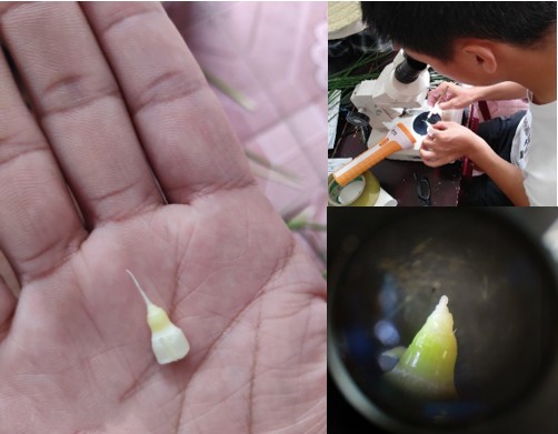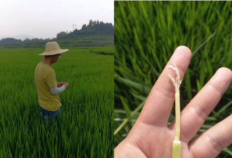 過去的七月,唐家坊繁忙而又熱情洋溢,簡單卻也充實。從月初觀葉齡,到月中查花期,再到月末去雜株,日日夜夜,隆平人的身影與汗水,遍灑唐家坊的水稻田間。 七月上旬,我們一起觀察各組合水稻的葉齡,對做過標記的父母本進行觀察記錄,并在基地的葉齡記載表上登記。葉齡記載作為生產(chǎn)過程中最重要的工作之一,不僅可以反映各組合的生長特性和生長進程,亦可以為來年制種生產(chǎn)技術方案作參考依據(jù)。 七月中旬,一個接一個的組合陸續(xù)進期了,我們的工作重心也開始轉到花期觀測上。花期相遇是雜交水稻制種高產(chǎn)的保證,因此我們需要時刻關注父母本的花期情況,以便花期出現(xiàn)偏差時及時通知農(nóng)戶采取措施(追施肥料、重曬田等)進行調(diào)節(jié),促使父母本達到理想花期。唐家坊基地組合多,面積大,每天要看的點和樣本數(shù)量多,而有時為了佐證個別組合的花期情況,我們的工作量會隨之加大,觀測點可能由平時的3-5個點增加到10個點左右。在花期觀察過程中,我們需要有目的選取了每兜最快的,每片最有代表性的田塊進行取樣,以保證我們所觀察的花期正確性。 幼穗觀察初期,具體情況的觀察肉眼無法看到,所以需要將取的樣本帶回基地,進行幼穗剝檢,并在解剖鏡下進行觀察,最后記錄余葉數(shù)和花期情況,以便分析判斷。 過了幼穗觀測1-2期,后面的花期特征比較明顯且能在肉眼下就可以就行觀察,這個時候我們一般都是選擇在田間直接剝開觀察。 七月下旬,花期觀測的工作已接近尾聲,田間雜株的清除開始成為我們的首要任務。純度是種子質(zhì)量的一個重要指標,所以水稻生長過程中的雜株清除工作顯得尤為重要。由于個別組合的雜株較多,我們請了當?shù)氐呐ぃ瑢⒅晷汀⑷~型不一樣的異形株以及早熟株進行清除,我們則隨后清理遺漏的雜株并統(tǒng)計第一次除雜后的田間含雜率。在經(jīng)過女工的初次清除以及我們的復查,田間含雜率都降到了公司的標準之內(nèi),制種田也呈現(xiàn)出它應有的整整齊齊。 縱然烈日當頭,抑或大雨傾盆,或是狂風突起,隆平人始終堅守在此。 手心捧不下這一方熱土,便將它埋藏在炙熱的心底,用汗水來澆灌,用關切來施肥,陪它看晴空萬里,陪它念山色新雨,陪它走過這花開花落又一個四季輪回,至始如一,不退卻,不懈怠。雖然它從來一言不發(fā),但是七月,是我和它的語言。