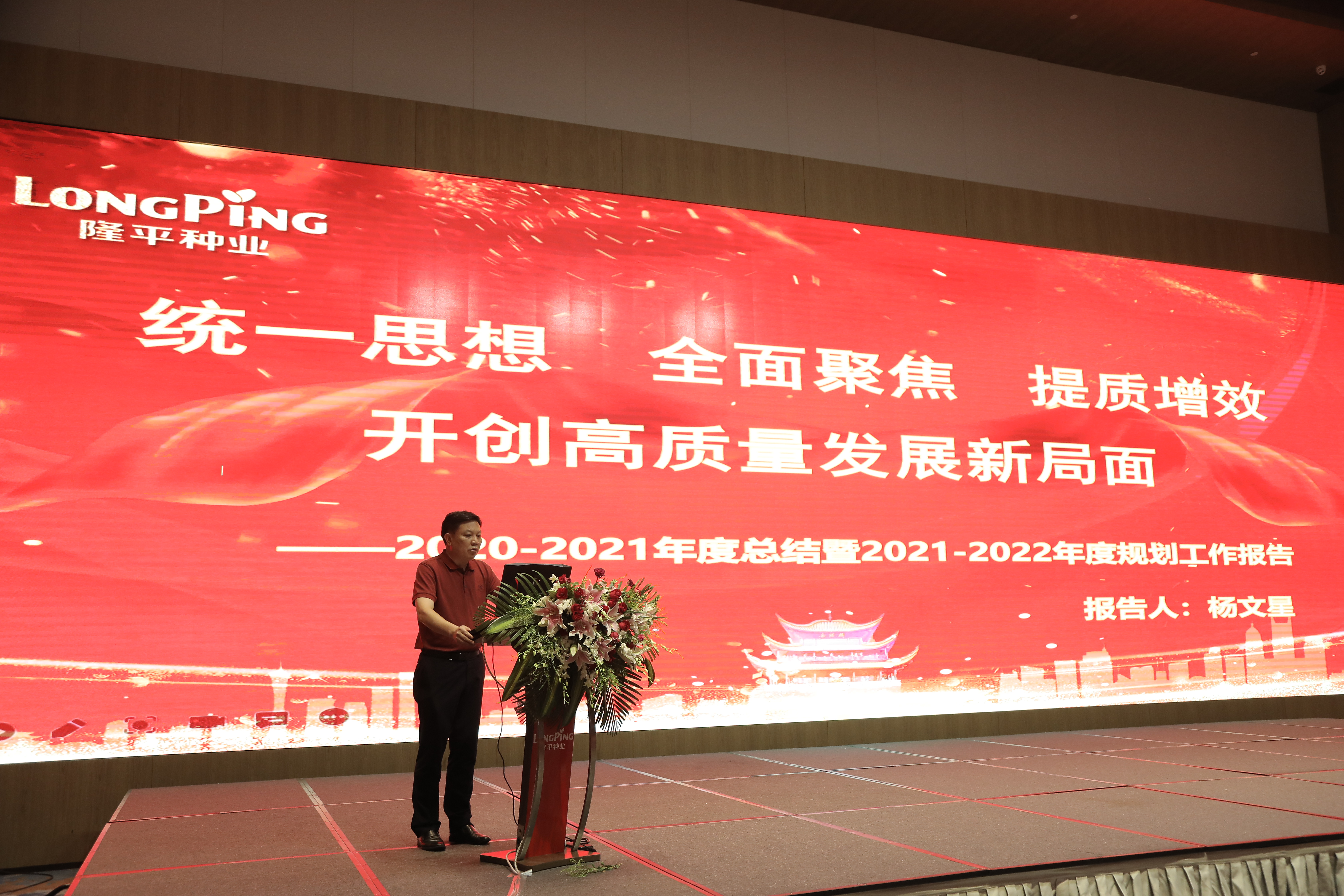 13:28,在激情昂揚的年度視頻中隆平種業總結規劃表彰大會正式拉開序幕。
