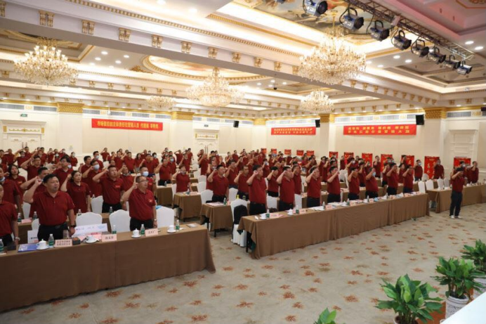 上臺與公司總經理廖翠猛先生簽訂了市場管控協(xié)議,同時全體參會人員就市場管控進行了莊嚴宣誓。
