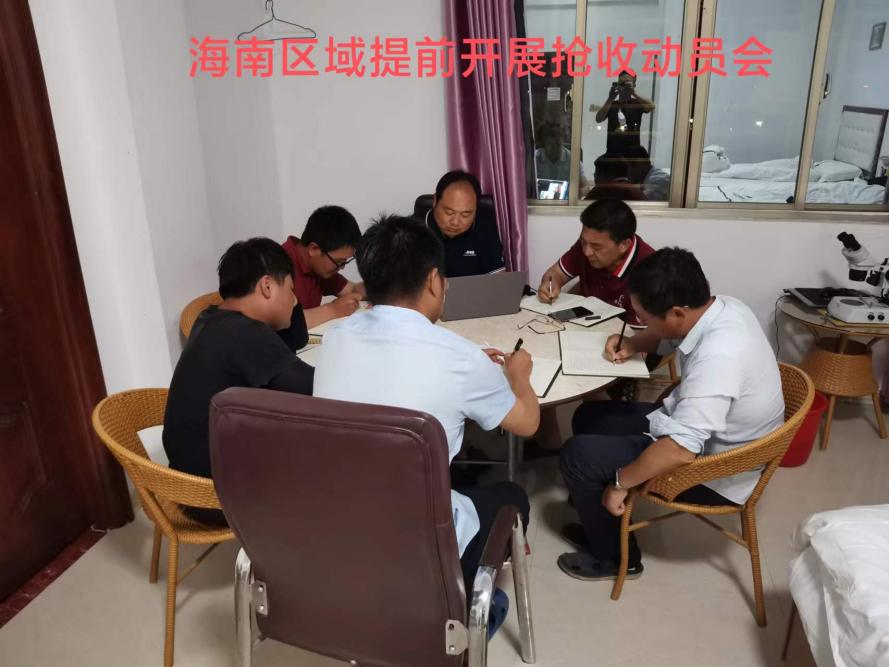 根據公司領導提出的市場需求,海南區域生產人員于4月25日開展搶收動員會,提前進入搶收狀態,仔細梳理各個生產商的烘干資源,理清各個生產商收割與烘干的難點,逐個解決。