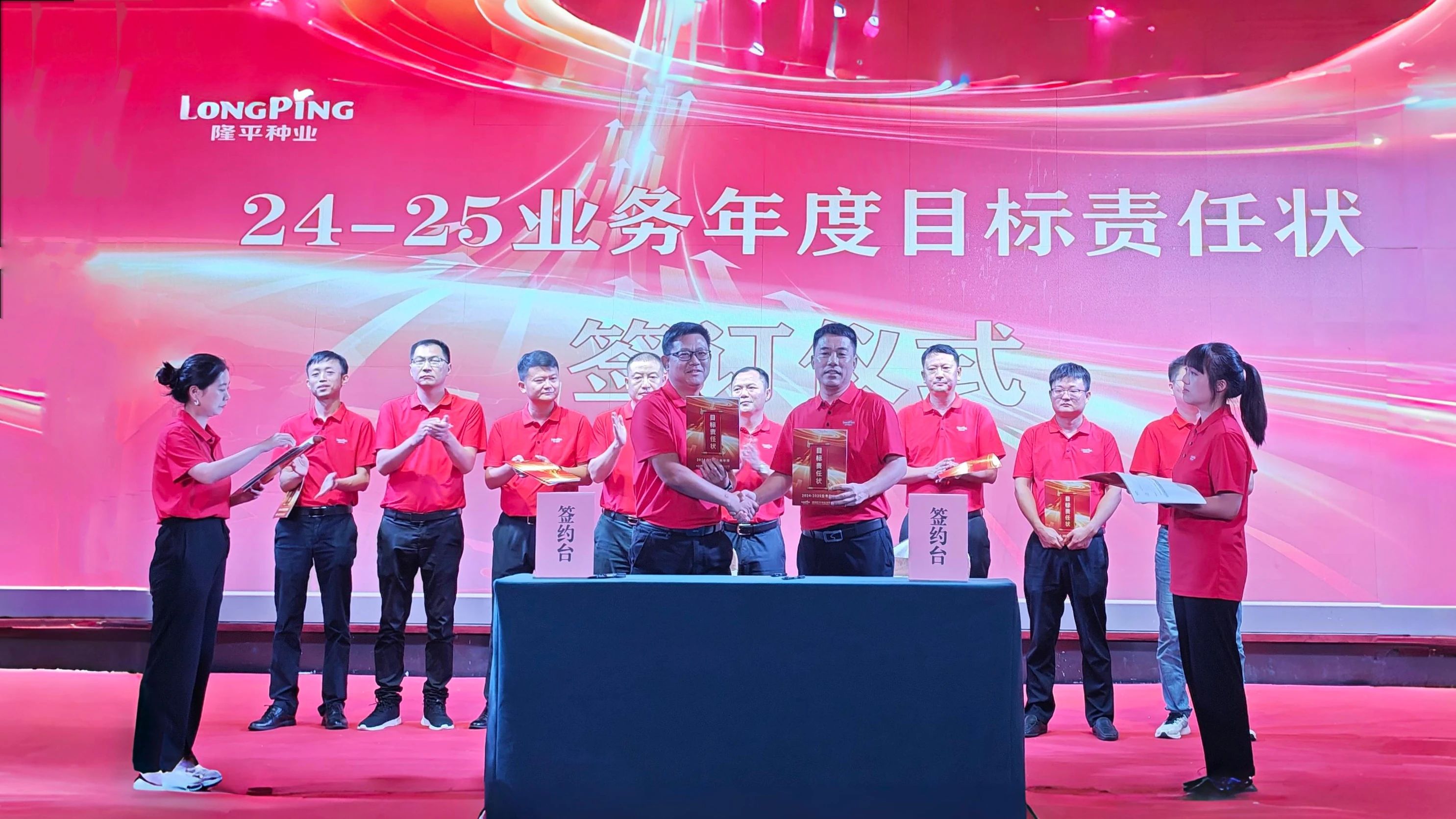 全體與會人員還共同見證了營銷各團(tuán)隊(duì)目標(biāo)責(zé)任狀簽訂儀式,以及公司各團(tuán)隊(duì)風(fēng)采展示,充分彰顯了隆平人敢于拼搏、勇于勝利的精神風(fēng)采。