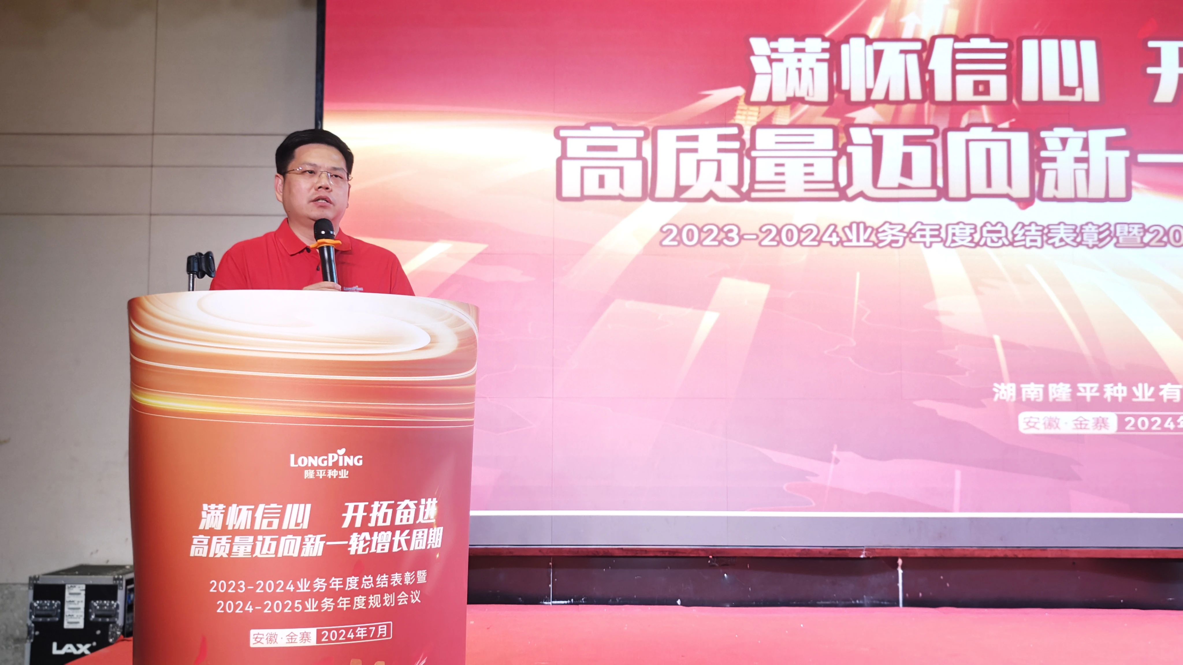 會上,盧成林總經(jīng)理充分肯定了全體隆平人在23-24業(yè)務(wù)年度工作中取得的成績,并表示公司將在集團(tuán)的正確領(lǐng)導(dǎo)下,堅(jiān)定不移地走高質(zhì)量發(fā)展路線。盧總?cè)娣治隽水?dāng)前面臨的挑戰(zhàn)和機(jī)遇,他強(qiáng)調(diào),公司當(dāng)前正處于重大發(fā)展機(jī)遇期,全體隆平人要滿懷信心,開拓奮進(jìn),把握形勢搶抓機(jī)遇,高質(zhì)量邁向新一輪增長周期。盧總明確了公司24-25業(yè)務(wù)年度的指導(dǎo)思想和目標(biāo),并就下階段工作進(jìn)行了系統(tǒng)部署。他指出大營銷線要聚焦打造新一代大單品、大品系,以增量帶動存量,搶抓市場機(jī)遇,實(shí)現(xiàn)總銷量進(jìn)一步增長;服務(wù)保障線要圍繞“五維增效”機(jī)制建設(shè),進(jìn)一步提升服務(wù)效能,激發(fā)團(tuán)隊(duì)活力。盧總向全體隆平人提出五點(diǎn)希望和要求:1.銘記初心,傳承隆平精神,做一個正能量、守紀(jì)律、負(fù)責(zé)任、有使命的隆平人;2.持續(xù)提升客戶與公司合作的體驗(yàn),為客戶創(chuàng)造價(jià)值;3.每位員工都要有主人翁意識,充分認(rèn)識到降本增效是每一位隆平人的事,實(shí)現(xiàn)銷量最大化、費(fèi)用最小化;4.根據(jù)公司指導(dǎo)思想,結(jié)合自己工作目標(biāo),系統(tǒng)謀劃全年工作,做到有目標(biāo)、有思路、有方案、有執(zhí)行;5.堅(jiān)定信念、實(shí)事求是、艱苦奮斗、勇于勝利。全體隆平人要同心協(xié)力,在新一輪增長周期中,將公司做得更穩(wěn)、更強(qiáng)、更大!