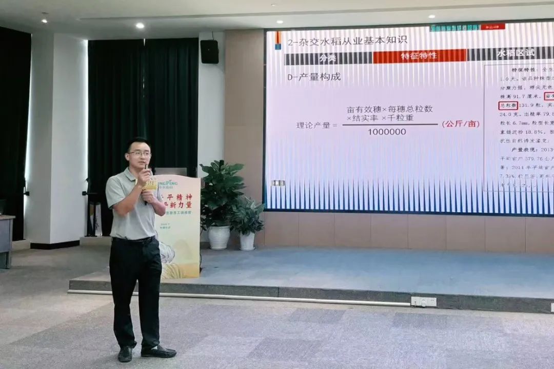 技術(shù)服務(wù)部總經(jīng)理肖燃以《雜交水稻基礎(chǔ)知識——水稻的一生》為主題,生動解析了雜交水稻分類、特性、區(qū)試、三蟲兩病等專業(yè)知識,現(xiàn)場新員工們積極主動參與討論,精準(zhǔn)把握產(chǎn)品特性。