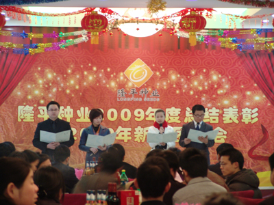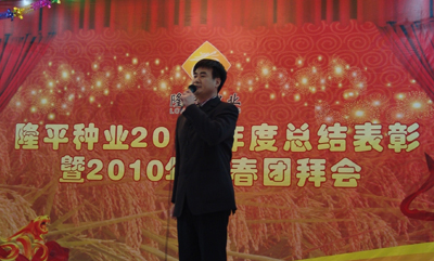 虎步奔騰開勝景,春風浩蕩展鴻圖。2010年2月7日,農歷小年,雜交水稻研究中心一樓宴會廳內,張燈結彩,春意融融,處處洋溢著喜慶。隆平種業在此隆重舉行2009年度總結表彰暨2010年新春團拜會。隆平高科袁定江副董事長、周丹總監,公司全體經營班子成員和全體在長員工共100多人參加此次盛會。