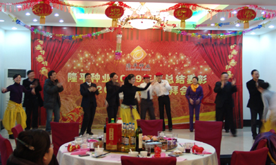 總結表彰后,公司員工還自編自導了多個精彩紛呈的文藝節目。各部門、分子公司員工的詩朗誦、獨唱、大合唱以及啞劇和舞蹈都贏得了現場觀眾的陣陣掌聲。節目最后,全體與會高管上臺參與舞蹈《印度新娘》,將活動推上了高潮。