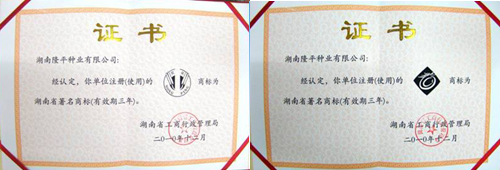近日獲悉,我公司(31類(lèi))龍形商標(biāo)和(31類(lèi))農(nóng)平商標(biāo)被評(píng)為2010年湖南省著名商標(biāo),省著名商標(biāo)是經(jīng)省工商局著名商標(biāo)審核委員會(huì)審核,省工商局局長(zhǎng)辦公會(huì)議審定,有效期3年。其中“農(nóng)平”牌商標(biāo)是繼2003年、2007年之后,第三次被評(píng)為湖南省著名商標(biāo)。