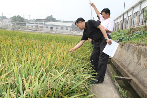 亞華種業(yè)科學院院長、隆平高科雜交水稻科研委員會主任楊遠柱研究員親自給考察團作報告,介紹亞華種業(yè)科學院的品種研究最新進展、研究技術(shù)、研究思路,以及超級雜交早稻的發(fā)展方向,并與院長助理楊廣一起帶領(lǐng)考察團前往實驗基地現(xiàn)場觀摩實驗品種的田間表現(xiàn)。