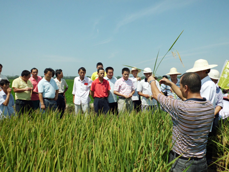 8月中旬,我公司在漢壽縣大南湖鄉(xiāng)和鼎城區(qū)韓公渡鎮(zhèn)分別組織召開了兩場準(zhǔn)兩優(yōu)608一季+再生稻現(xiàn)場觀摩會。來自漢壽、鼎城、赫山(資陽)、沅江、臨澧、澧縣、南縣共7個(gè)區(qū)域的重點(diǎn)鄉(xiāng)鎮(zhèn)零售商和種田大戶,總計(jì)300人左右參加會議。