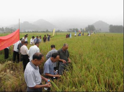 喜報:9月8日,贛西團隊在袁州區金瑞鎮鳳山村成功召開了超級稻Y兩優1號專場觀摩會,觀摩效果十分喜人!引用一位大伯的話“種禾35年了,都沒見過這么高的結實率!基本都沒有蔫谷”