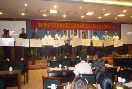 下午,2010—2011年度總結(jié)表彰大會(huì)在巢旅98大酒店召開(kāi)。首先,由隆平種業(yè)營(yíng)銷(xiāo)中心副經(jīng)理鐘其全對(duì)公司的現(xiàn)有品種和后續(xù)品種做了詳細(xì)的介紹。鳳陽(yáng)代理商代表高偉就和公司合作四年來(lái)的收獲及新品種的推廣經(jīng)驗(yàn)作了典型發(fā)言,無(wú)保留地分享了他的成功經(jīng)驗(yàn)和技巧。隨后,安徽營(yíng)銷(xiāo)中心劉俊經(jīng)理作了“安徽省2010-2011營(yíng)銷(xiāo)年度總結(jié)工作及2011—2012年度運(yùn)作思路的報(bào)告”,在總結(jié)上年度銷(xiāo)售工作所取得成績(jī)的同時(shí),對(duì)下年度的銷(xiāo)售工作提出了新的目標(biāo)計(jì)劃,并對(duì)接下來(lái)的工作做了部署安排。