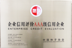 熱烈祝賀我公司在中國(guó)種子協(xié)會(huì)開展的2011年種子行業(yè)信用評(píng)價(jià)中榮獲“中國(guó)種子行業(yè)信用評(píng)價(jià)AAA級(jí)信用企業(yè)”。公司是首批獲評(píng)的AAA級(jí)信用企業(yè)之一,是此次評(píng)選結(jié)果中最高信用級(jí)別企業(yè)。