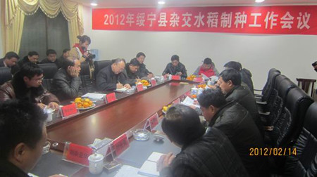 2月14日,綏寧縣農業局組織在縣政府會議室召開了“2012年綏寧縣雜交水稻制種工作會議”,綏寧縣李玉賢副縣長、縣農業局楊梅成局長、我司劉愛民總農藝師及亞華種業、金稻種業、科裕隆種業等十多家企業代表參會。
