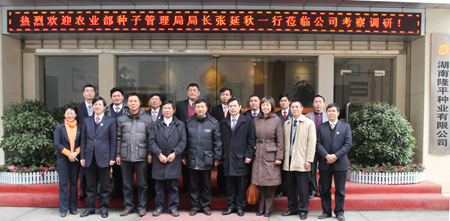 2月17日,農(nóng)業(yè)部種子管理局局長張延秋率綜合處處長吳曉玲、市場監(jiān)管處副調(diào)研員張冬曉到公司考察指導(dǎo)工作。省農(nóng)業(yè)廳副廳長李志純、省種子管理局局長周志魁等領(lǐng)導(dǎo)一同考察了公司。隆平高科董事長伍躍時(shí)、總裁顏衛(wèi)彬,公司總經(jīng)理廖翠猛等領(lǐng)導(dǎo)陪同考察。