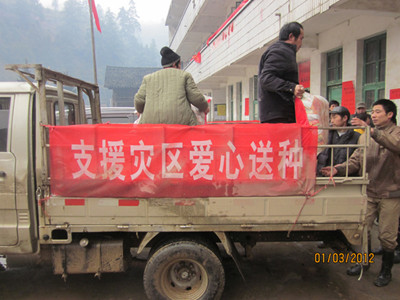 2012年2月29日,長沙,陰有小雨,帶著領導的囑托,帶著所有隆平人切切的希望,我們帶著價值5萬余元的1500斤愛心種上路了。