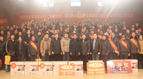 2013年1月12日,天門市電視臺一號演播大廳歡聲如潮,主題為“生財有稻”天門市2011—2012年度兩優1128高產種植狀元賽頒獎典禮正在舉行。來自全市的100多名種植能手齊聚一團,共慶豐收的喜悅。