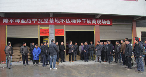 自2011年以來,我司已在基地現(xiàn)場召開了四場不達標(biāo)種子轉(zhuǎn)商會。此次在瓦屋基地直接轉(zhuǎn)商因氣候?qū)е掳l(fā)芽率低的不達標(biāo)種子74037斤,是我司狠抓質(zhì)量的又一具體舉措。