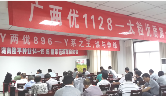 8月24日,湖南隆平種業有限公司在桐城眾信農業公司會議室召開了安慶、皖南片區的示范觀摩啟動會議,整個會議分室內會議和室外會議組成。室內會議分三個部分:代理商示范品種田間表現分享;安徽分公司副總經理李奎介紹重點品種以及公司后續的強勢品種;安徽分公司總經理劉俊給大家分享種業形勢發展,并解析示范觀摩的政策。