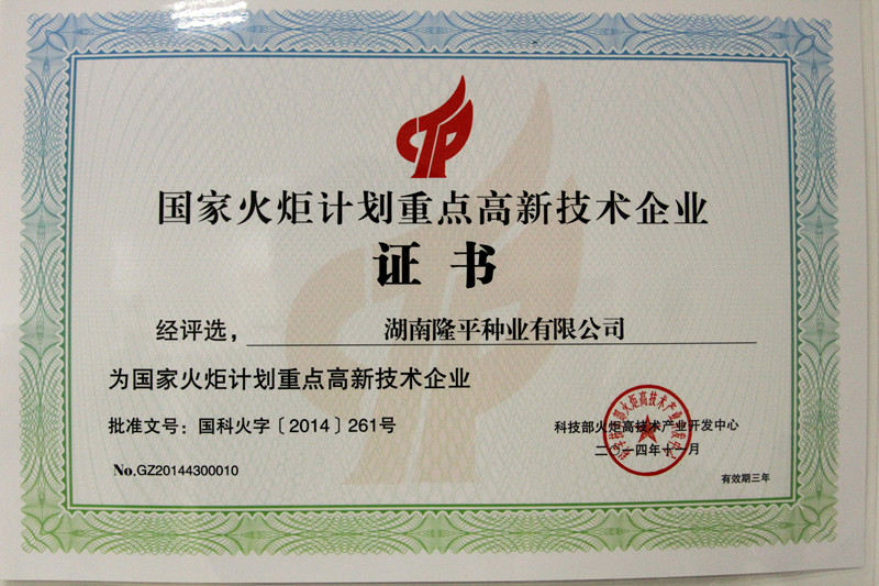 近日獲悉,公司被評為“2014年國家火炬計劃重點高新技術企業”,有效期三年。 2014年湖南省僅25家企業被評選上。