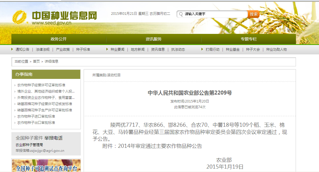 昨日,從農(nóng)業(yè)部在中國種業(yè)信息網(wǎng)上發(fā)布的《中華人民共和國農(nóng)業(yè)部公告第2209號》文件獲悉:Y兩優(yōu)896通過國家審定。