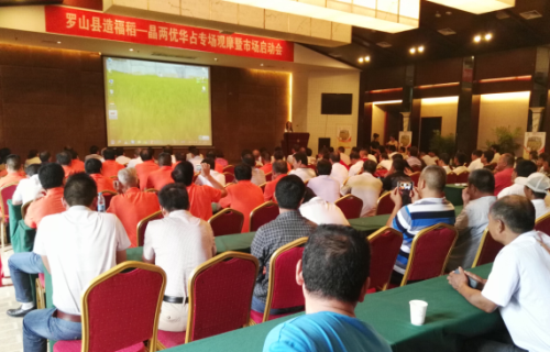 9月1日,秋高氣爽,來自潢川、光山、平橋、息縣的種業精英共50多人以及羅山縣零售商、種田大戶近百人齊聚羅山縣,共同見證“造福稻——晶兩優華占”的“出嫁”之旅。