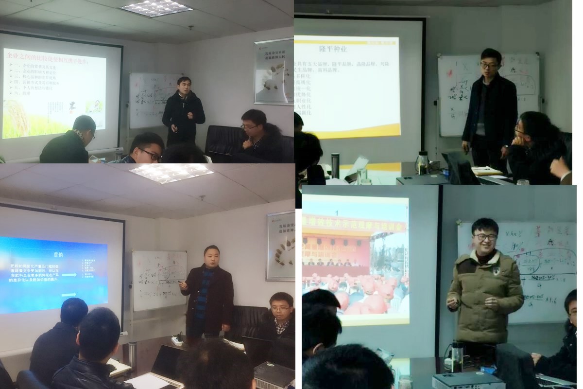 首先是隆平與其他公司優(yōu)劣勢對比,熊經(jīng)理等幾位同事對隆平與其他公司在宣傳方案、培訓(xùn)方法、營銷思路等方面進(jìn)行了對比分析,指出各自的優(yōu)缺點,讓我們拓展了思路,便以取長補(bǔ)短。