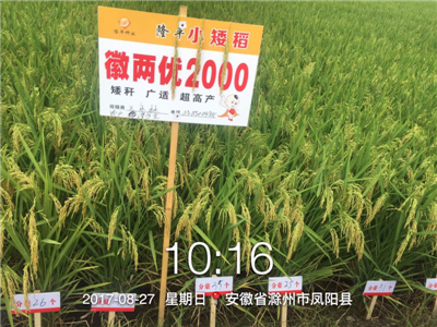2017年8月27日,安徽省鳳陽縣迎來了小矮稻徽兩優(yōu)2000觀摩盛會。