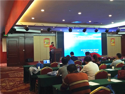 會議首先由技術服務部劉老師詳細介紹了晶兩優華占適應性廣、抗病性強、米質優、抗倒伏、高產穩產等特點,并講解了晶兩優華占在信陽地區歷年表現情況及主要栽培技術。劉老師指出:好品種加科學栽培技術是獲得高產和更高銷售成績的保證。