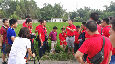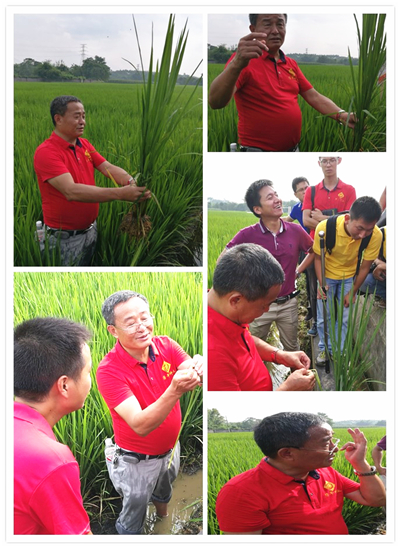 在田間,參訓(xùn)人員抓住這次難得的機(jī)會,請教自己在工作中遇到的技術(shù)問題,如如何區(qū)分雜草稻,如何預(yù)估水稻破口期及時打藥,如何快速區(qū)分自己公司品種和其他公司品種等,廖老師頂著烈日,耐心細(xì)致地為大家答疑解惑。為了更好地解答大家的疑惑,廖老師還結(jié)合前期華南的各地實際情況,有針對性地為大家講解了防治矮縮病以及怎樣幫助農(nóng)戶增產(chǎn)增收等關(guān)鍵知識。在田間2個半小時的學(xué)習(xí)讓大家受益匪淺,滿載而歸。