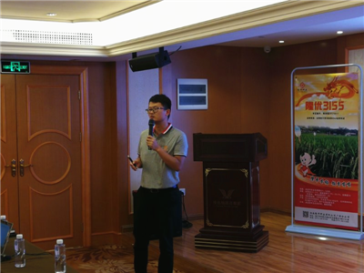 接著,水稻技術指導專家廖老師深入講解了隆平品牌重點品種栽培注意事項及病蟲防治要求。廖老師深入淺出地分析了廣西近年來水稻的病害情況,詳細介紹了領優華占,隆優3155,韻兩優332等隆平品牌新品種,并對廣西區域水稻的主要病蟲防治提出寶貴建議。