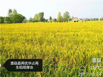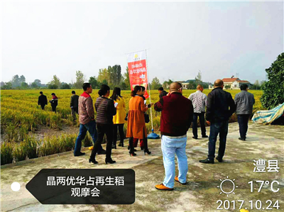 2017年10月24日上午,澧縣夢溪鎮召開晶兩優華占再生稻經銷商觀摩大會,三十多名經銷商爭相來到晶兩優華占再生稻觀摩地點,見證她卓越的再生能力。