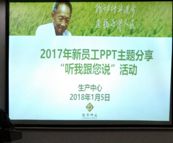 1月5日,生產中心2017年新員工PPT主題分享“聽我跟您說”活動在公司三樓會議室順利舉行。公司總經理助理鄧總、營銷支持部傅經理、行政人事中心企業文化主管及生產中心員工共計50余人參加。 新員工PPT主題分享“聽我跟您說”活動是生產中心近年來一直堅持的傳統,旨在加強生產中心年輕團隊的梯隊建設,提高新員工PPT制作水平與個人演講表達能力,總結與分享在基地的工作經歷。每年分享會,新員工總給帶給我們諸多驚喜和感悟,因此,分享會也成了生產中心最受期待的活動之一。 此次分享會共有15位來自各個生產基地新員工進行了分享。大家分別就自己近半年來的工作生活情況,圍繞“自我挑戰”、“成長提升”、“經驗分享”、“抓生產質量”、“過程監控”、“責任心”、“問題解決”、“陽光心態”等方面進行了精彩分享。他們的分享或激情昂揚、或深入透徹、或幽默風趣、或內容豐富,讓我們了解了他們作為一個隆平生產人的經歷和成長,盡管他們對工作、對生活有著各自的感悟和收獲,但我們聽到了他們作為一名生產人,作為一名隆平人的共同的心聲,那就是責任、共贏、成長、感恩。 新員工分享結束后,生產中心一家人進行了座談交流。作為前輩,老員工們對新員工的成長進步表示祝賀和鼓勵,同時也提出了他們的期望,希望年輕一輩的生產人繼續發揚吃苦耐勞的精神,沉下心來,扎扎實實做好生產工作;養成良好的工作習慣,下到田間地頭,隨時記錄發現問題,多問,多思考,多向前輩請教。 通過分享會,全體生產人統一了思想和認識,一顆種子悄然萌芽,大家認識到:我們是負責雜交水稻種子生產的,新員工就是我們的“種子”,代表生產中心的希望,他們的茁長成長就是部門的發展成長。 最好的我們在最好的時間遇到了最好的平臺——隆平種業。2018,我們蓄勢待發!