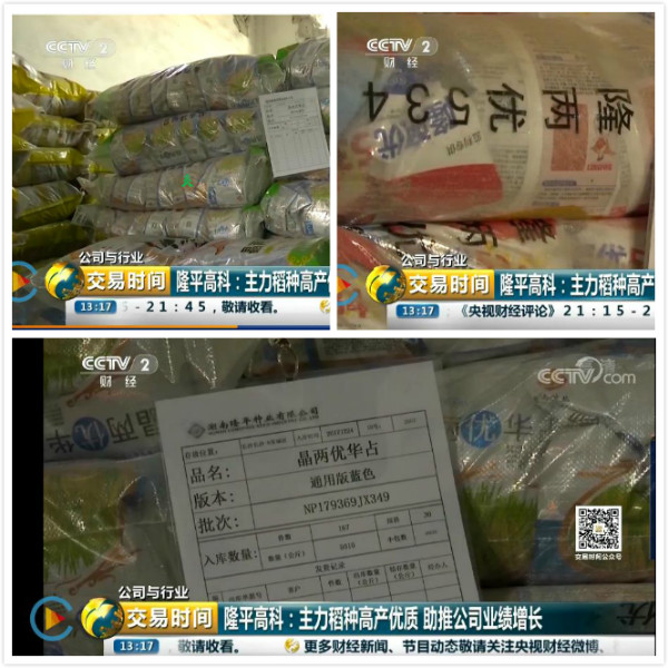 隆平高科2017年前三季度預(yù)收貨款超8億,發(fā)展勢(shì)頭迅猛,得到了社會(huì)的廣泛關(guān)注。2018年1月,中央電視臺(tái)CCTV交易時(shí)刻欄目組對(duì)公司進(jìn)行專題報(bào)道,作為公司近年來推出的主力品種——晶兩優(yōu)系列、隆兩優(yōu)系列高調(diào)出鏡。